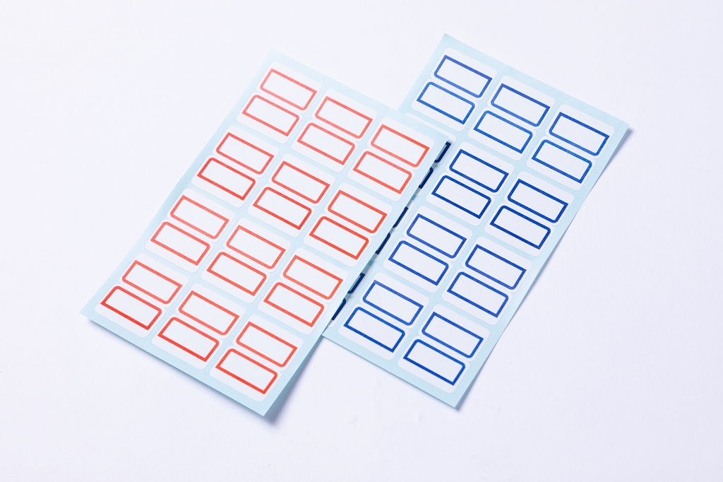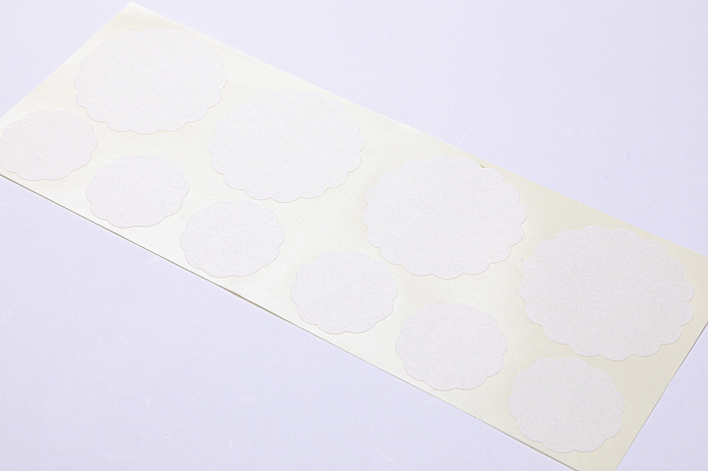 型抜きして余分な部分を切り離した後、切り分けて小さいシートにします。